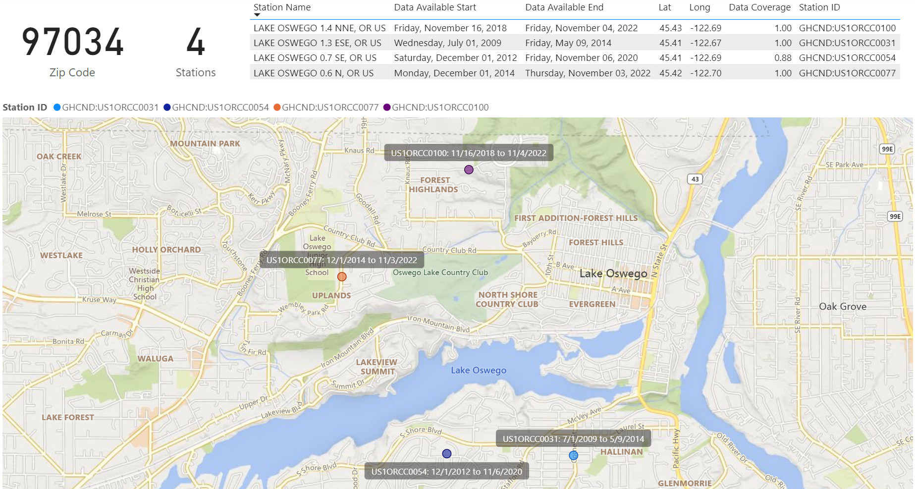 Using Power Query and Power BI, I was able to hit a NOAA endpoint to learn: